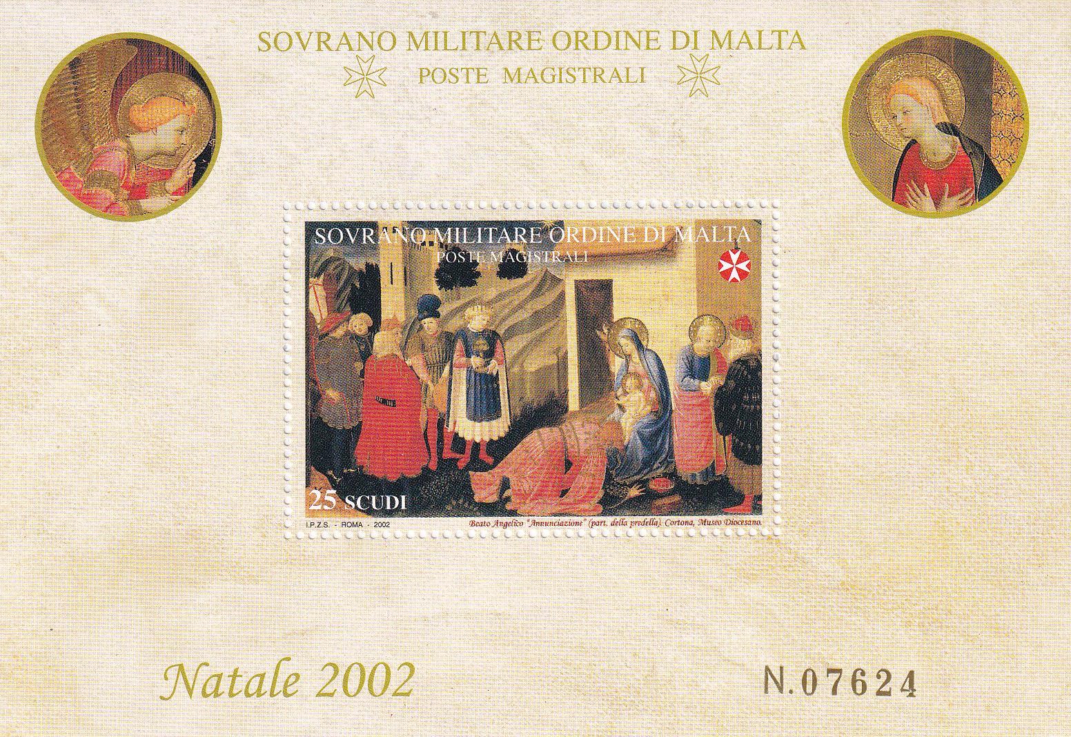 Foglietto S.M.O.M. Anno 2002 Natale. Particolare della predella ‘Annunciazione’ del Beato Angelico (BF n. 70)