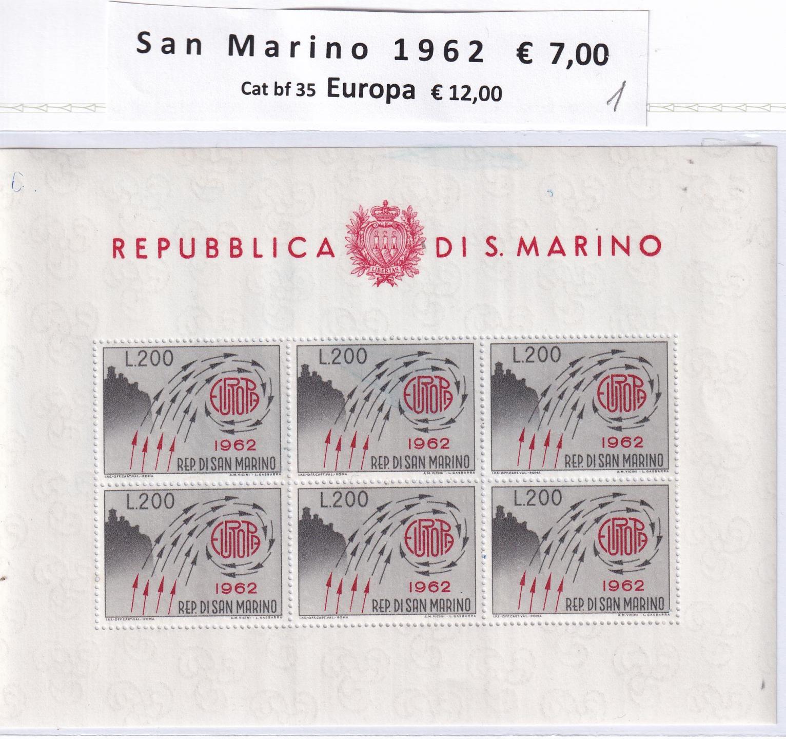Foglietto San Marino Anno 1962 cat. n. 617 BF n. 35 Europa 62
