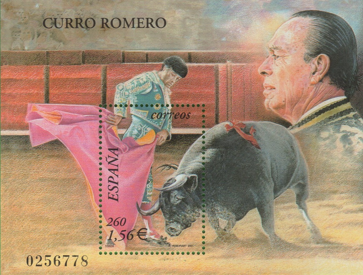 Foglietto Spagna Anno 2001 La corrida Omaggio al torero Curro Romero (BF 112)