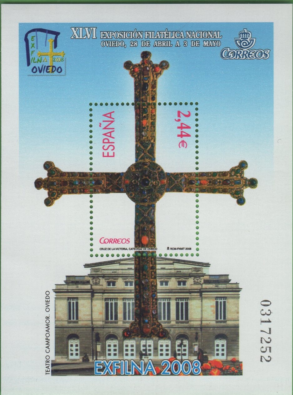 Foglietto Spagna Anno 2008 EXFILNA 2008 Esposizione filatelica nazionale Oviedo (BF 182)