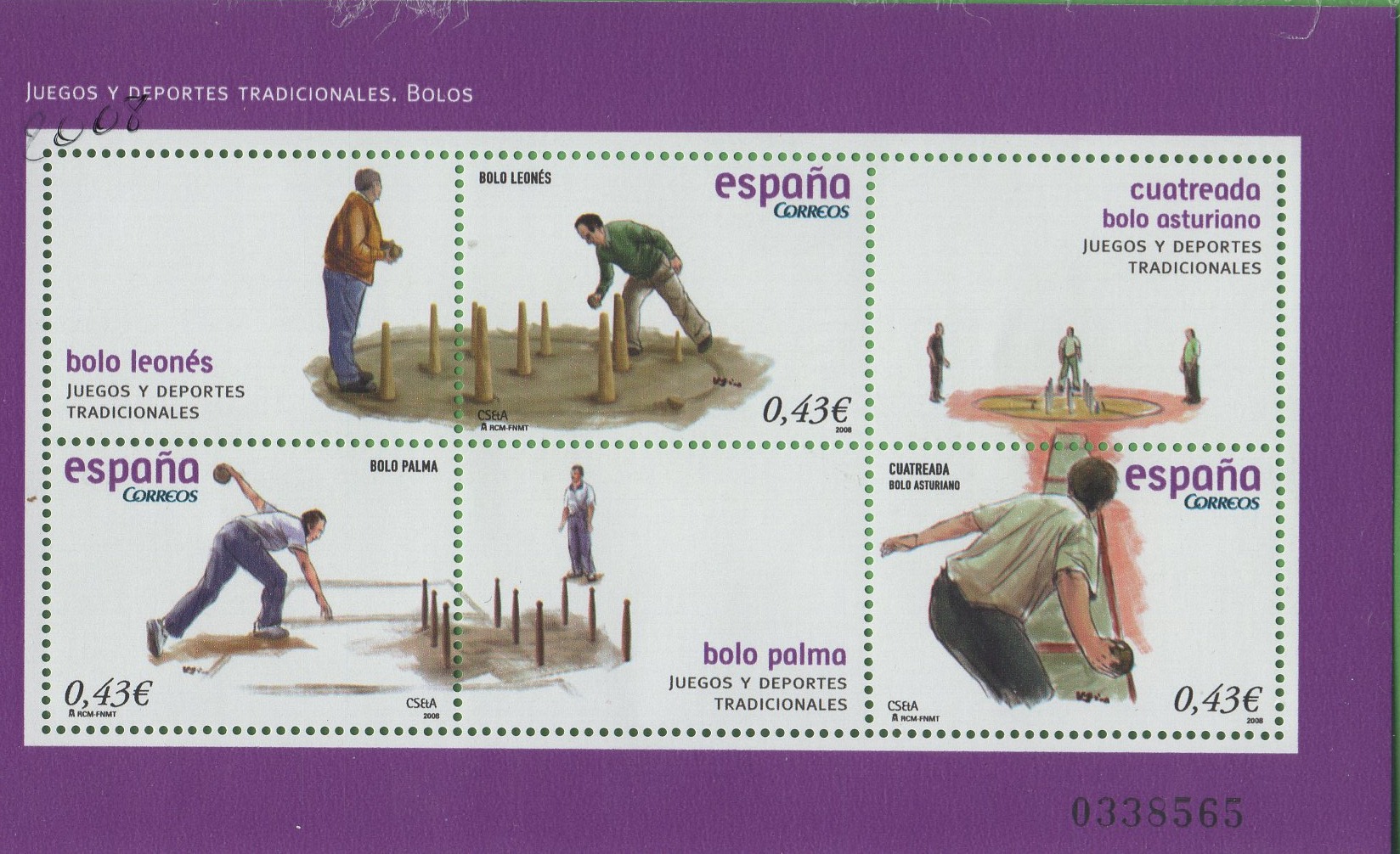 Foglietto Spagna Anno 2008 Giochi e sport tradizionali Birilli bolos (BF 183)