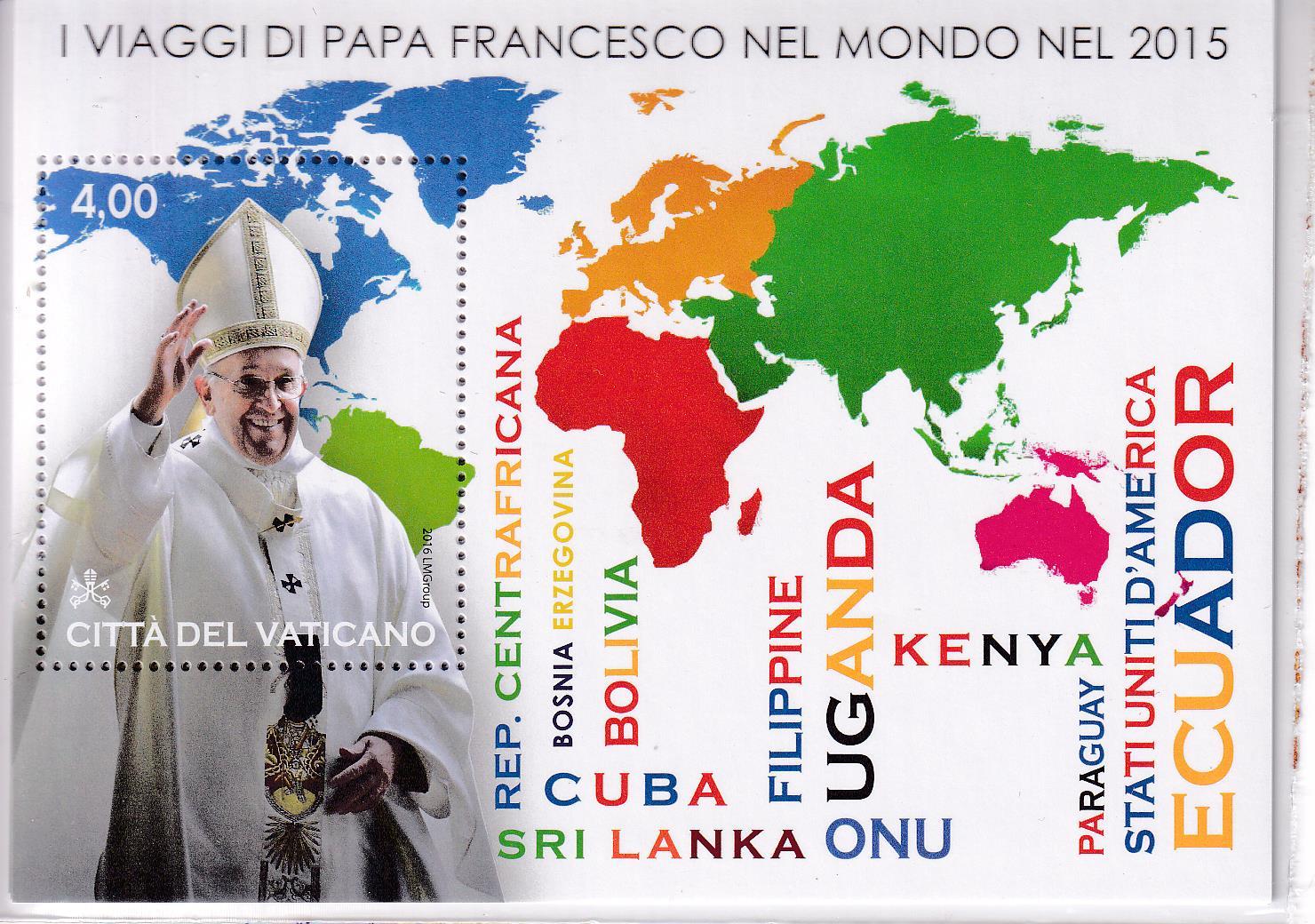 Foglietto Vaticano, Anno 2016, I viaggi nel mondo di Papa Francesco nel 2015 (BF n. 89)