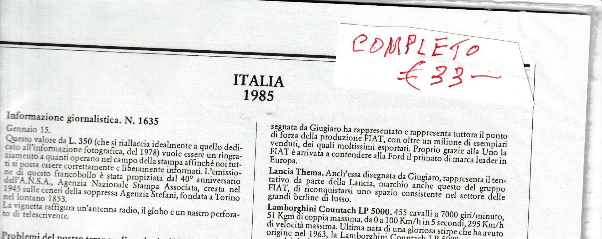 Francobolli Italia Repubblica Anno 1985 annata completa