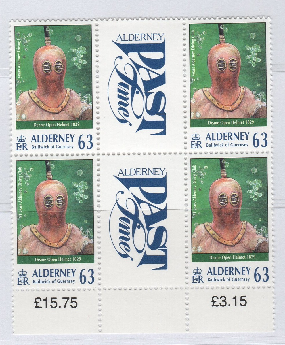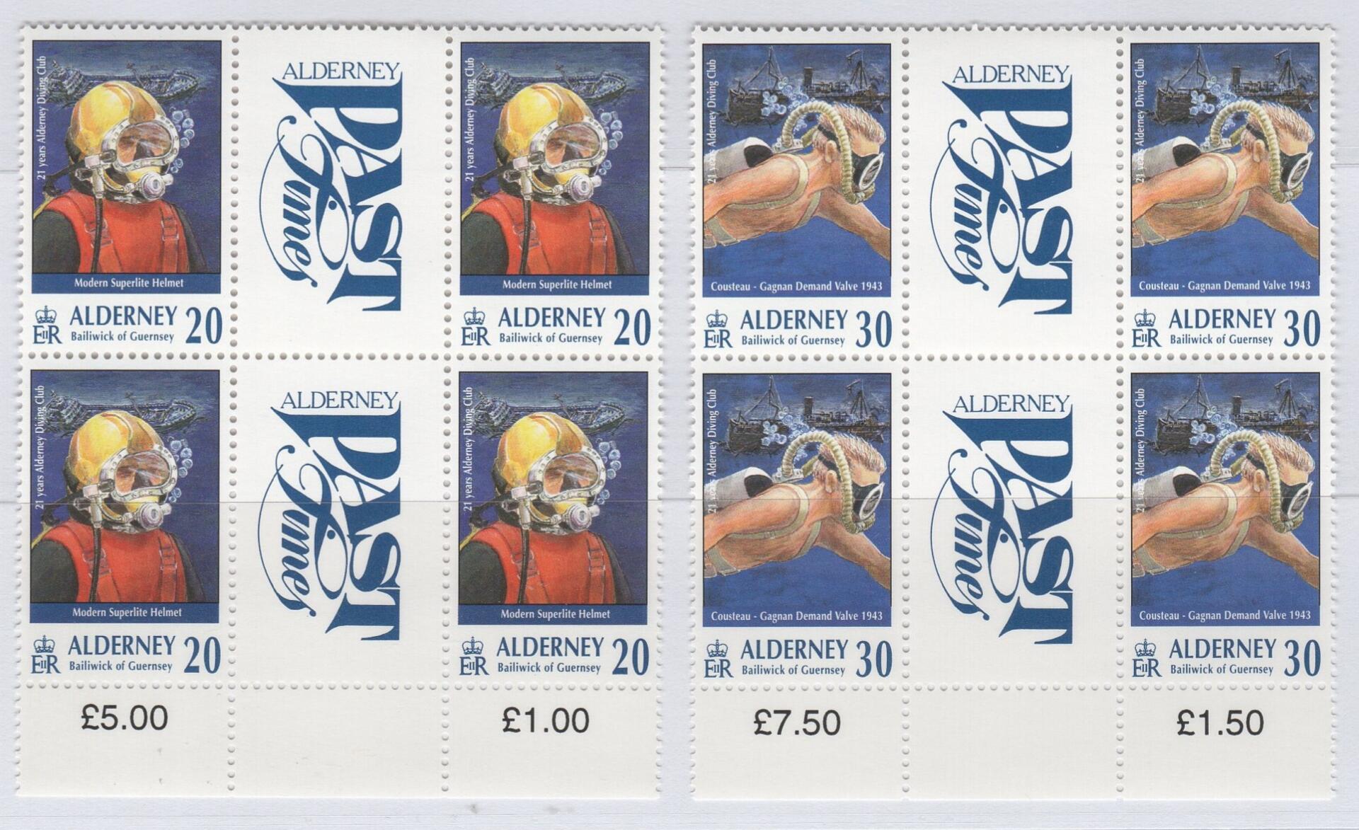 Francobolli Alderney Anno 1998 Quartine Passatempi ad Alderney Seconda serie L’esplorazione sottomarina nelle varie epoche 21esimo anniversario del Diving Club