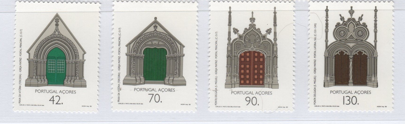 Francobolli Azzorre Anno 1993 Architettura portoghese Prima serie Portali di chiese