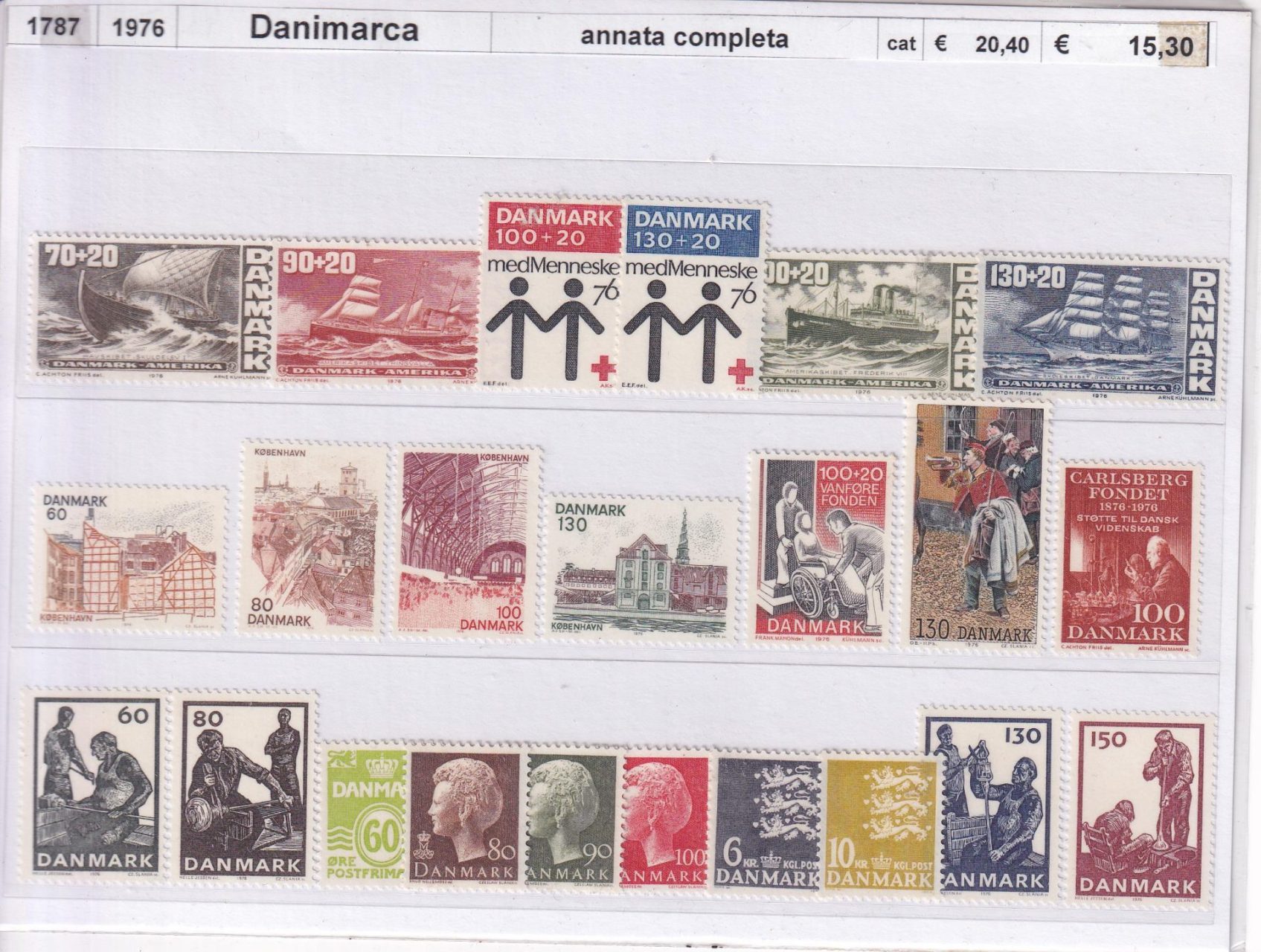 Francobolli Danimarca Anno 1976 Annata completa Tematiche Personaggi Illustri, Monumenti e Vedute, Navi
