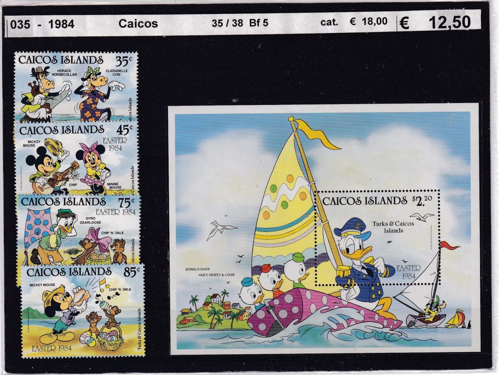 Francobolli e Foglietto Caicos – Turks & Caicos anno 1984 – Tematica Disney Pasqua 1984