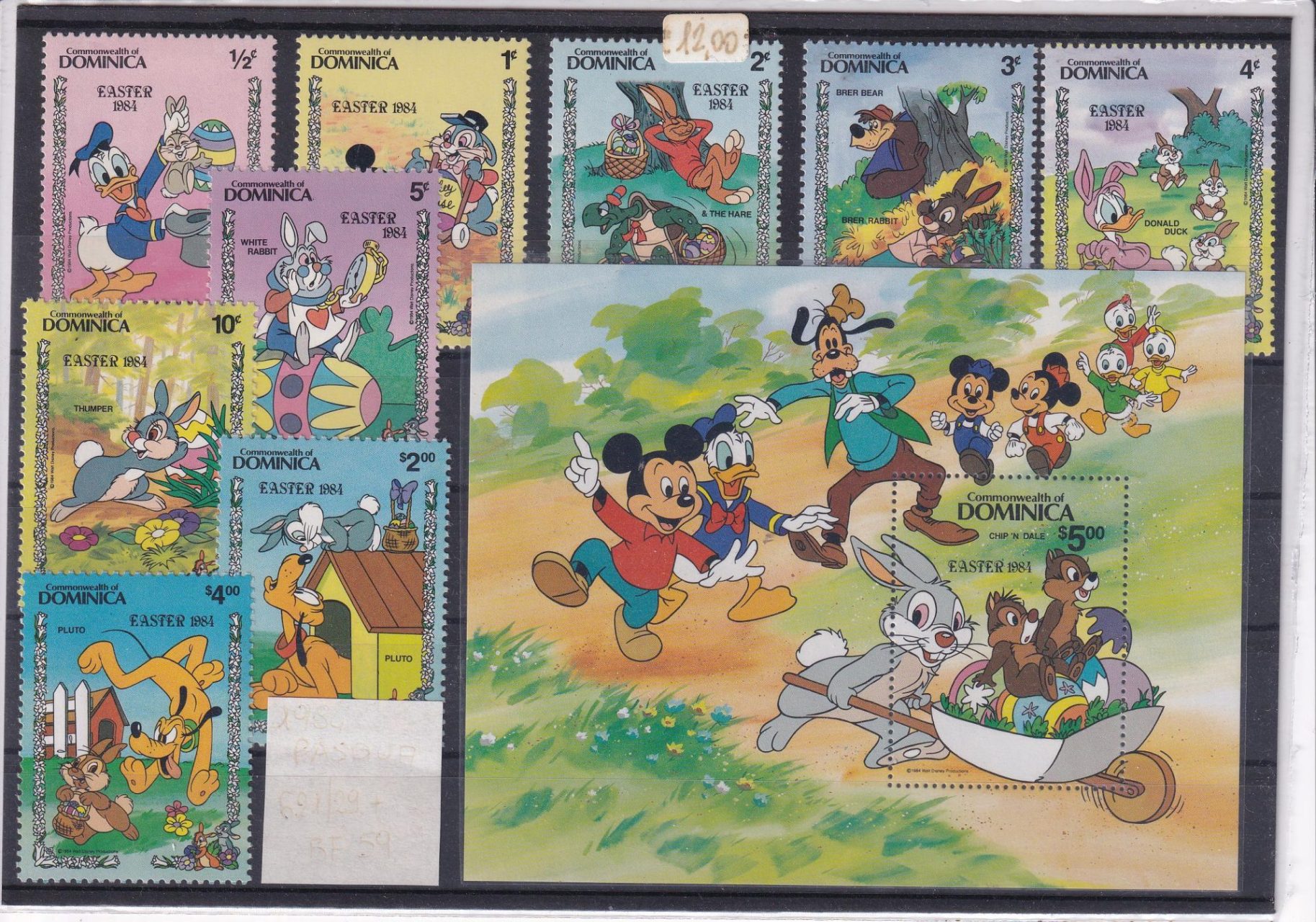 Francobolli e Foglietto Dominica anno 1984 – Tematica Disney Pasqua 1984