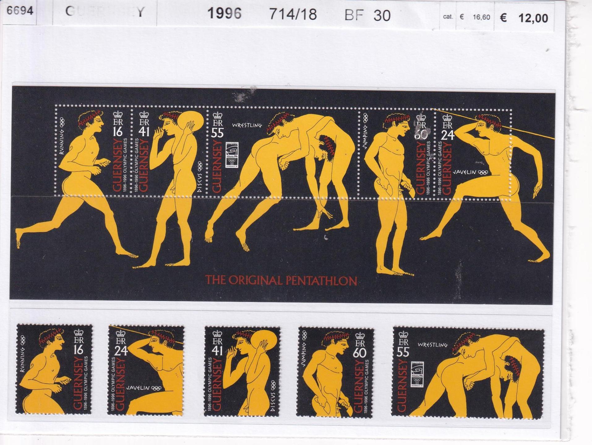 Francobolli e Foglietto Guernsey, Anno 1996, Varie emissioni (cat. n. 714-718, BF n. 30)
