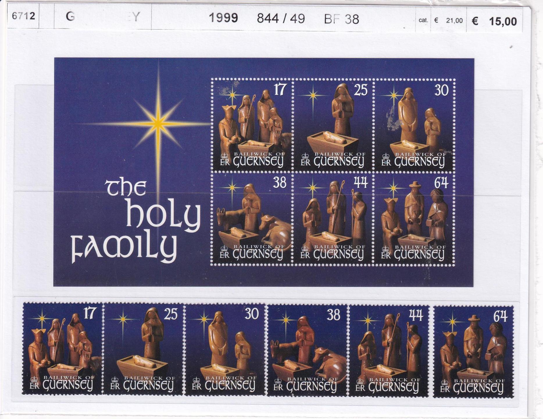 Francobolli e Foglietto Guernsey, Anno 1999, Natale (cat. n. 844-849, BF n. 38)