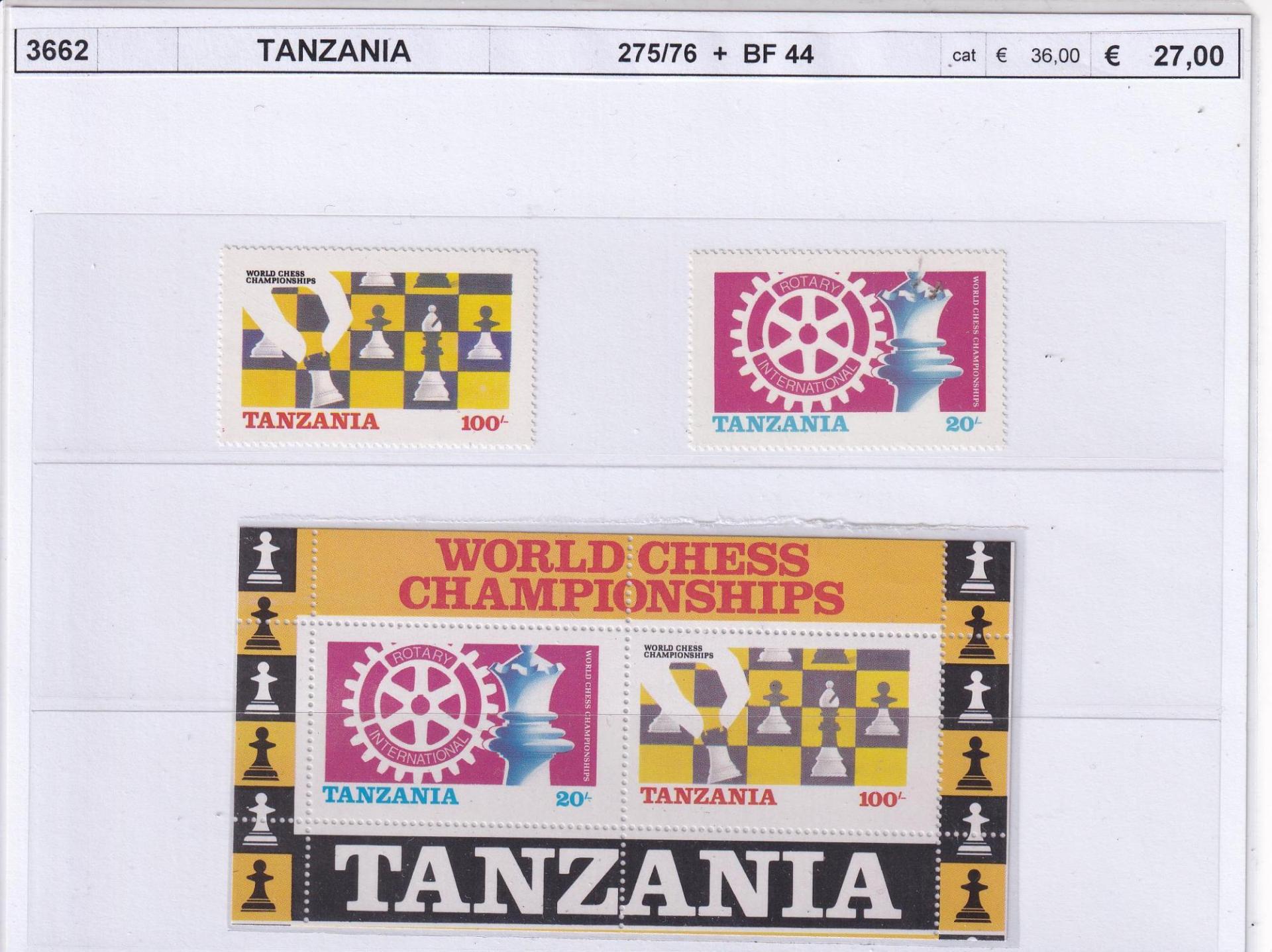 Francobolli e Foglietto Tanzania, Scacchi (cat. n. 275-276, BF n. 44)