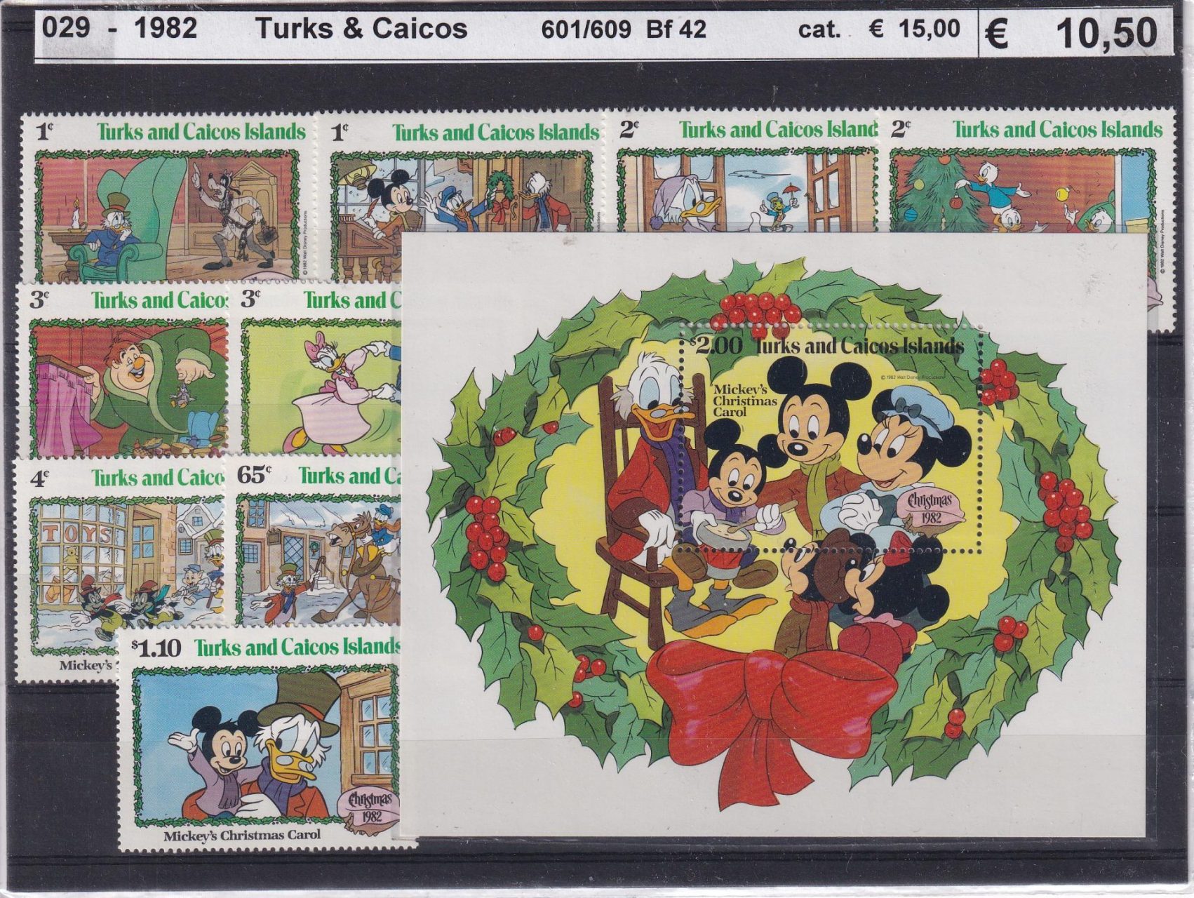 Francobolli e Foglietto Turks e Caicos anno 1982 – Tematica Disney Natale 1982