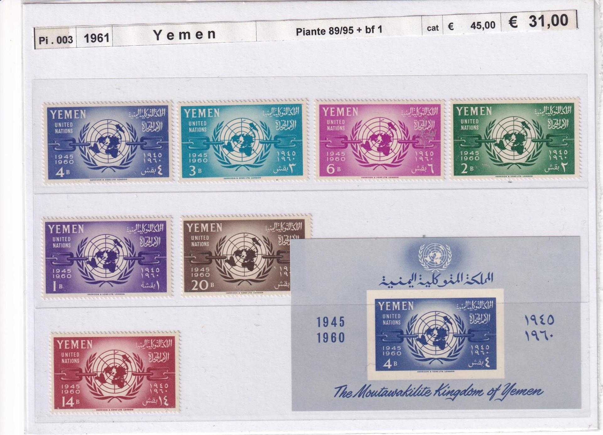 Francobolli e Foglietto Yemen, Anno 1962, Piante (cat. n. 89-95, BF n. 1)