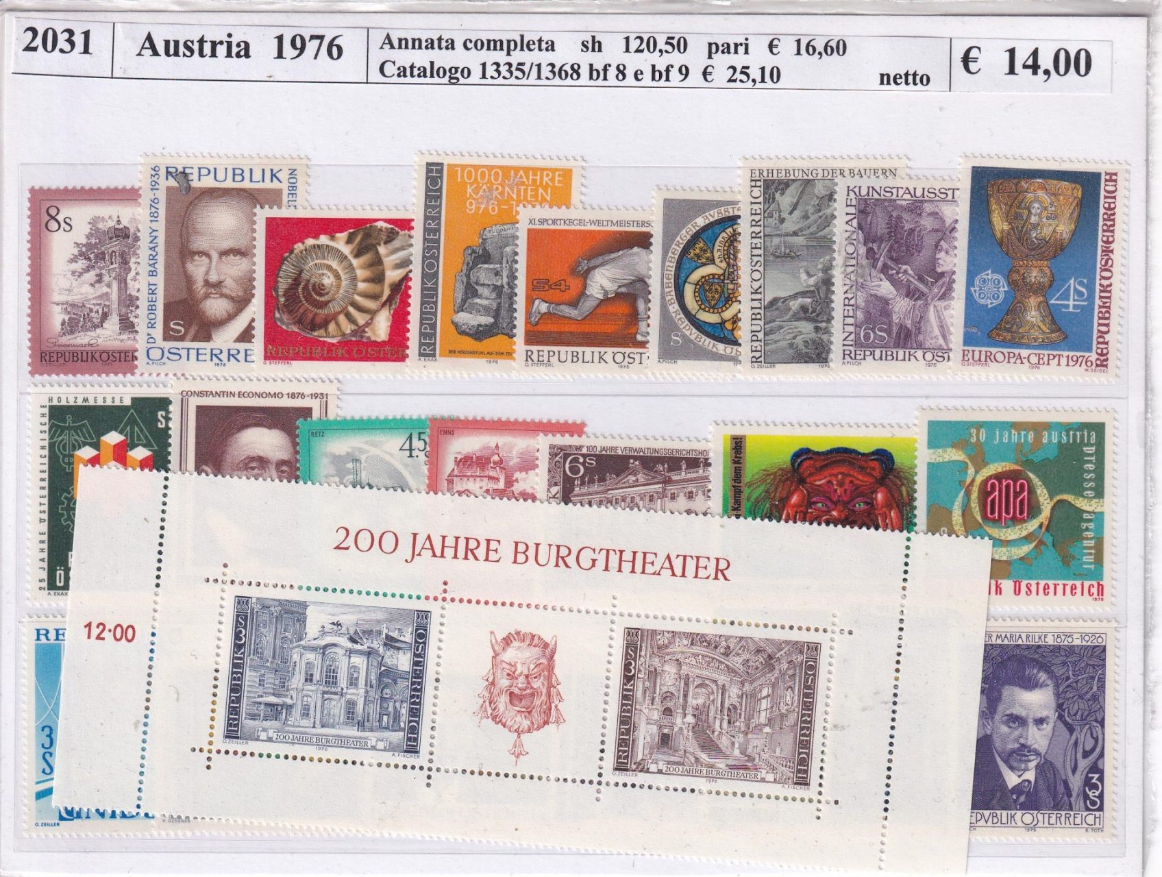 Francobolli Foglietti Austria Anno 1976 Annata completa