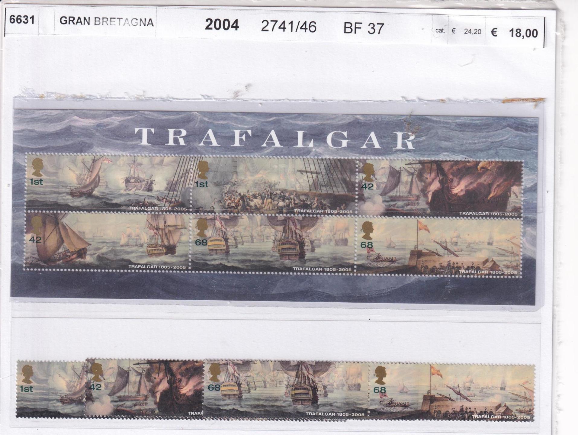 Francobolli Foglietti Gran Bretagna Anno 2004 Serie Trafalgar