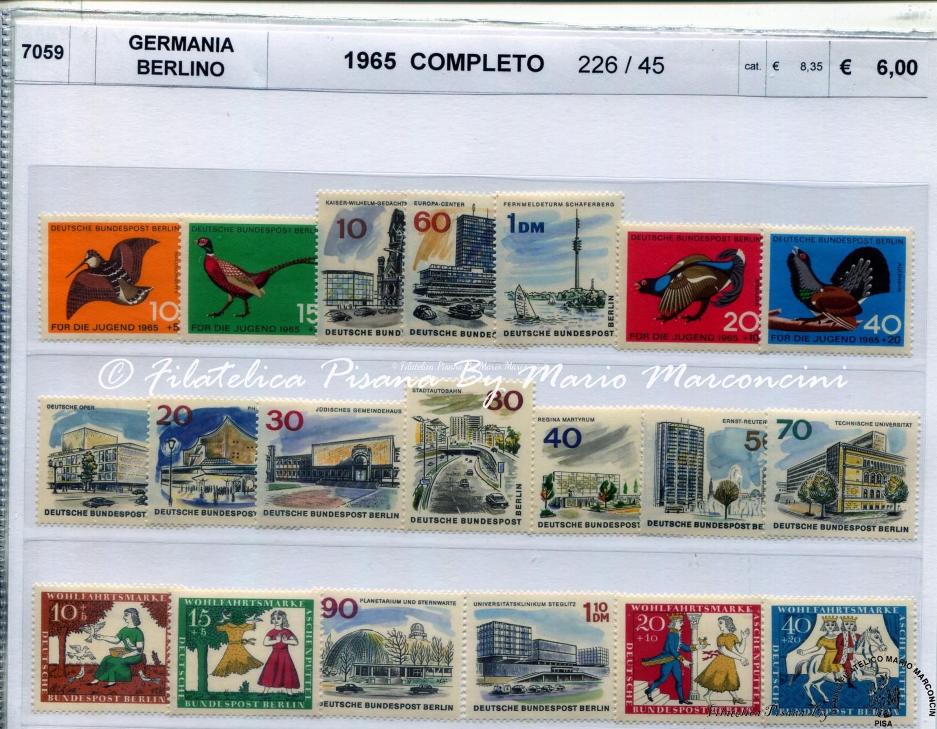 Francobolli Germania Berlino Anno 1965 Annata completa