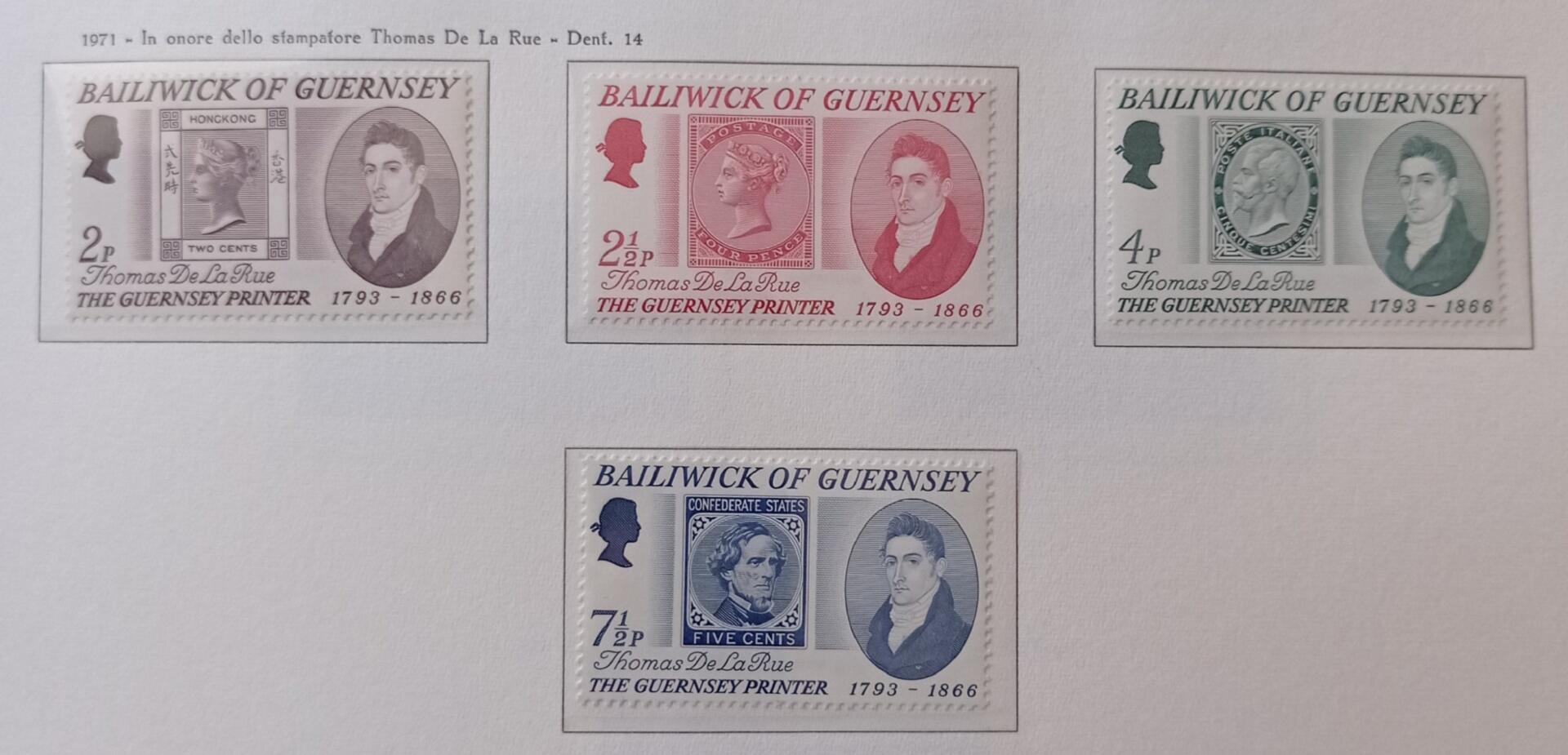 Francobolli Guernsey Anno 1971 Riproduzione di francobolli stampati da De La Rue e sua effigie