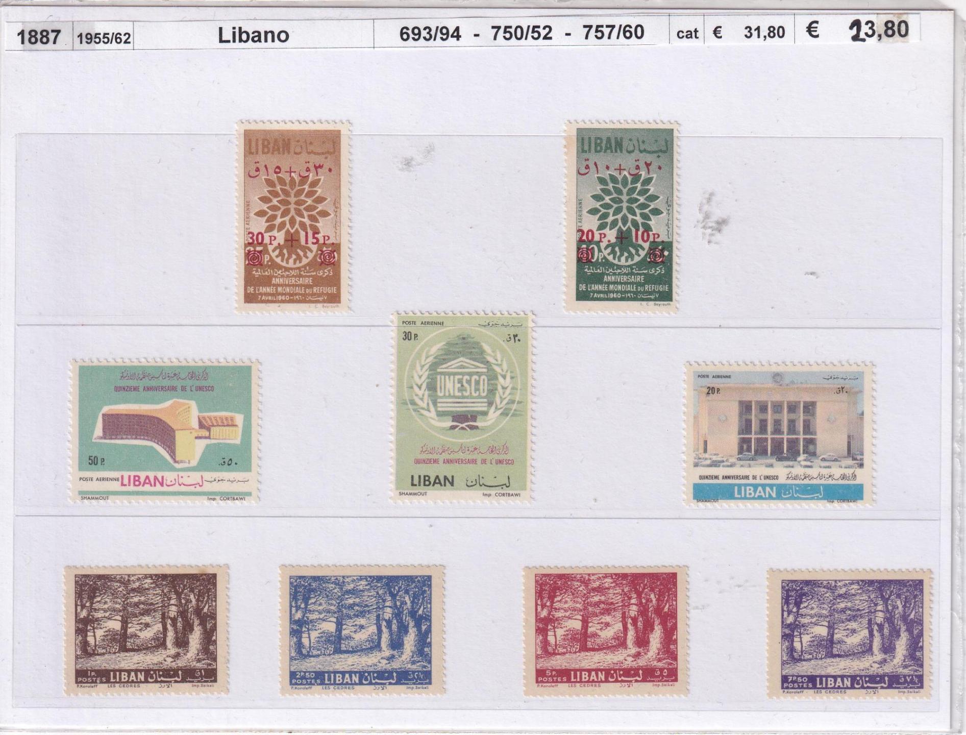 Francobolli Libano, Anni 1955-1962, Varie emissioni (cat. n. 693-694, n. 750-752, n. 757-760)