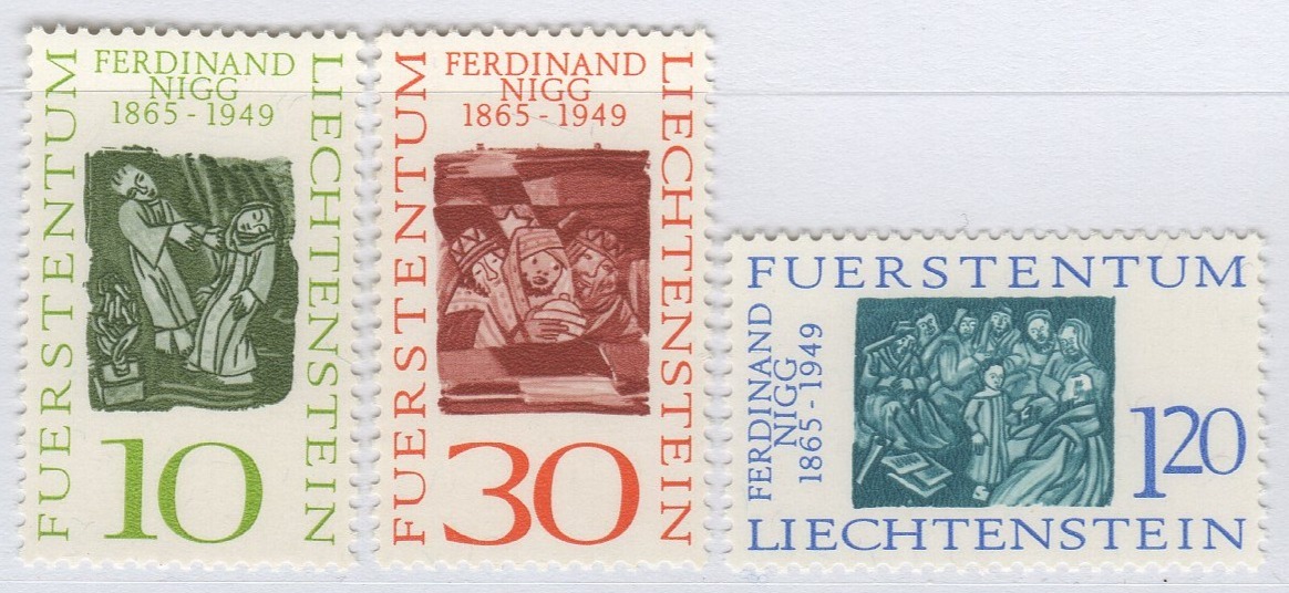 Francobolli Liechtenstein Anno 1965 Centenario della nascita del pittore Ferdinand Nigg