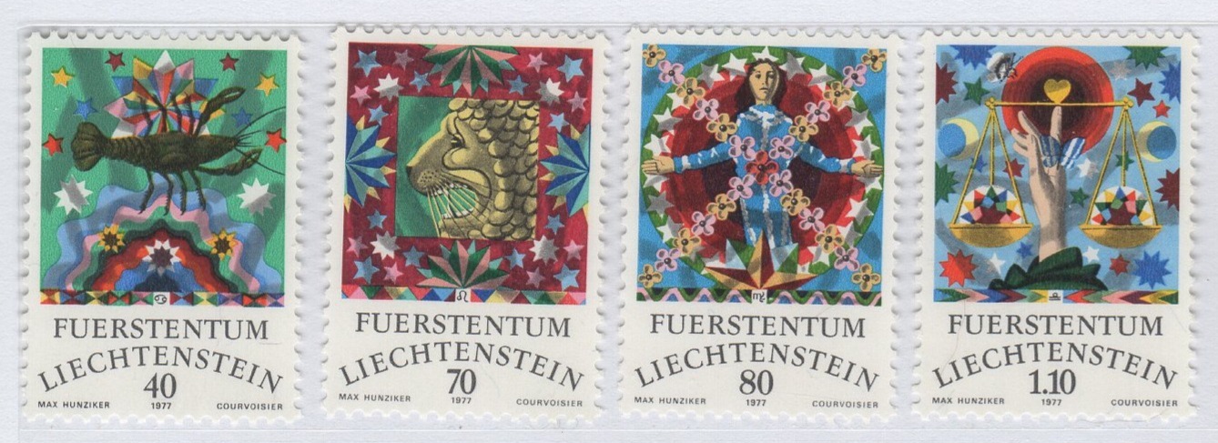 Francobolli Liechtenstein Anno 1977 Segni dello Zodiaco Seconda serie
