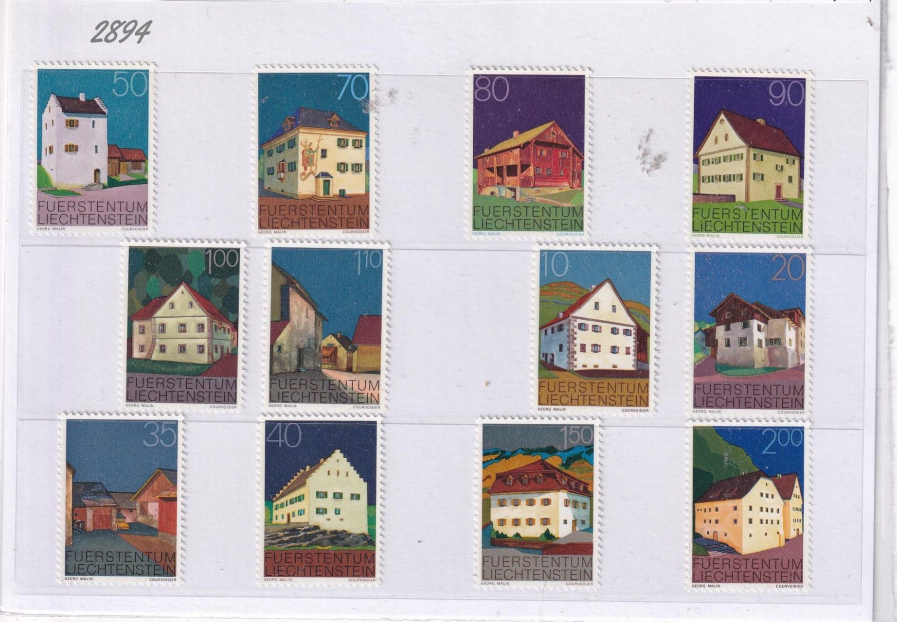 Francobolli Liechtenstein Anno 1978 Serie Abitazioni Famose Tematica Monumenti e Vedute