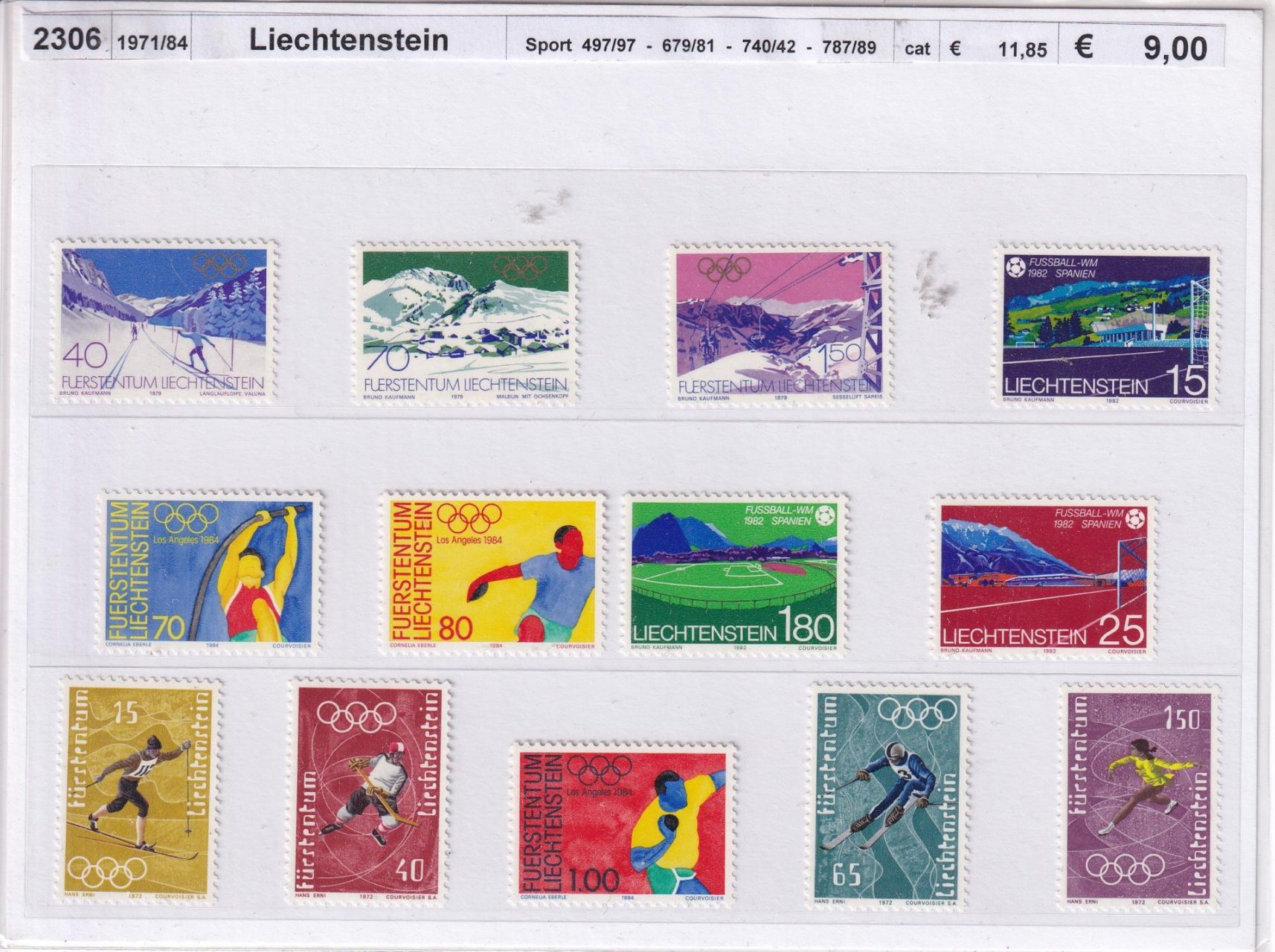 Francobolli Liechtenstein Tematica Sport (cat. n. 494-497, 679-681, 740-742, 787-789)