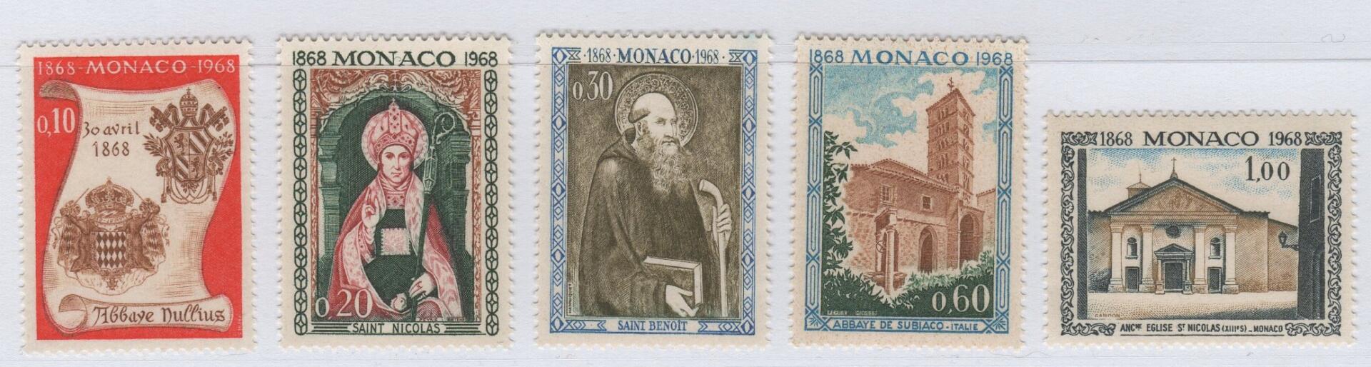 Francobolli Monaco Anno 1968 Centenario dell’Abbazia Nullius Diocesis di Monaco
