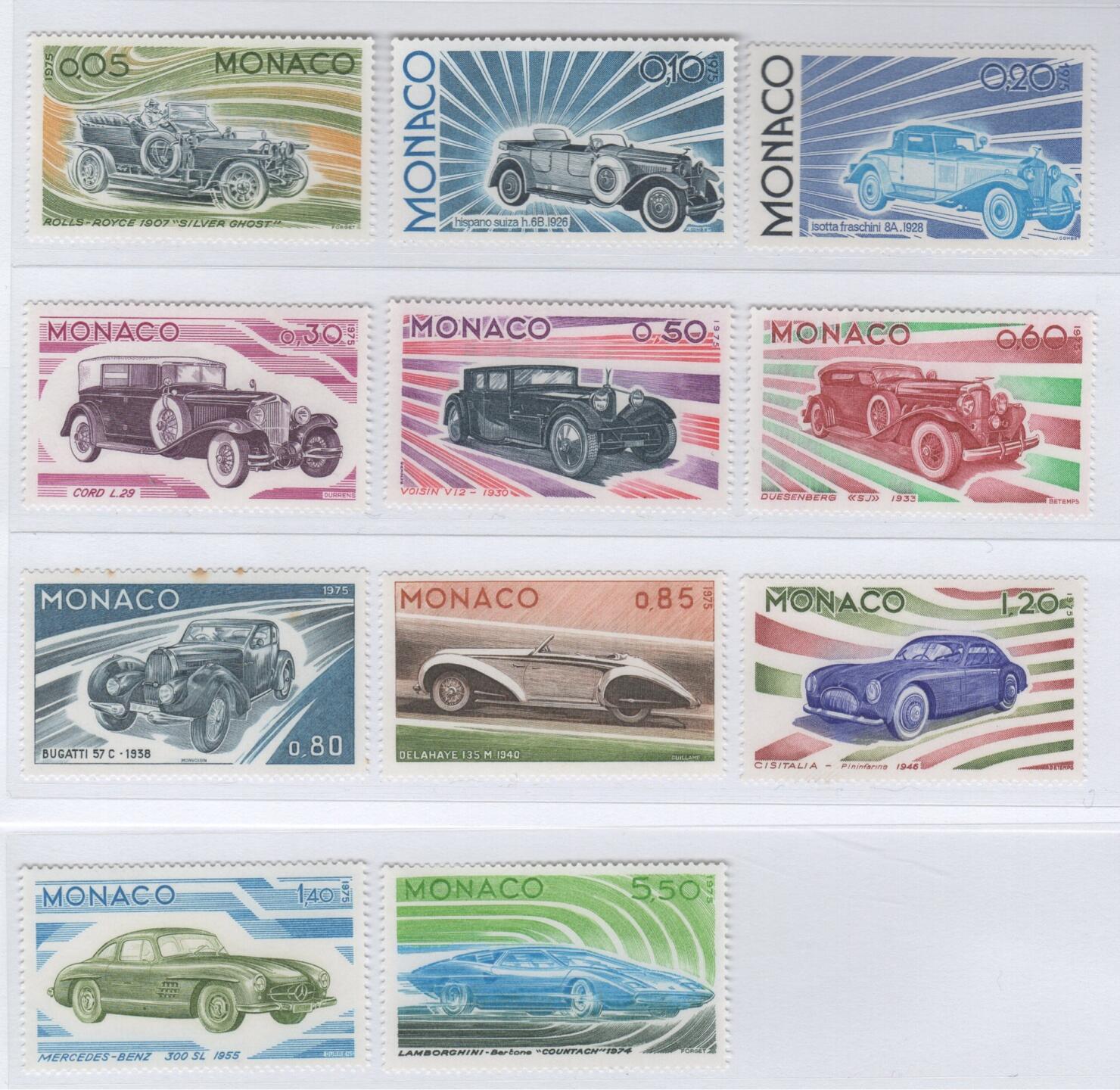 Francobolli Monaco Anno 1975 Evoluzione della linea dell’automobile dal 1907 al 1974