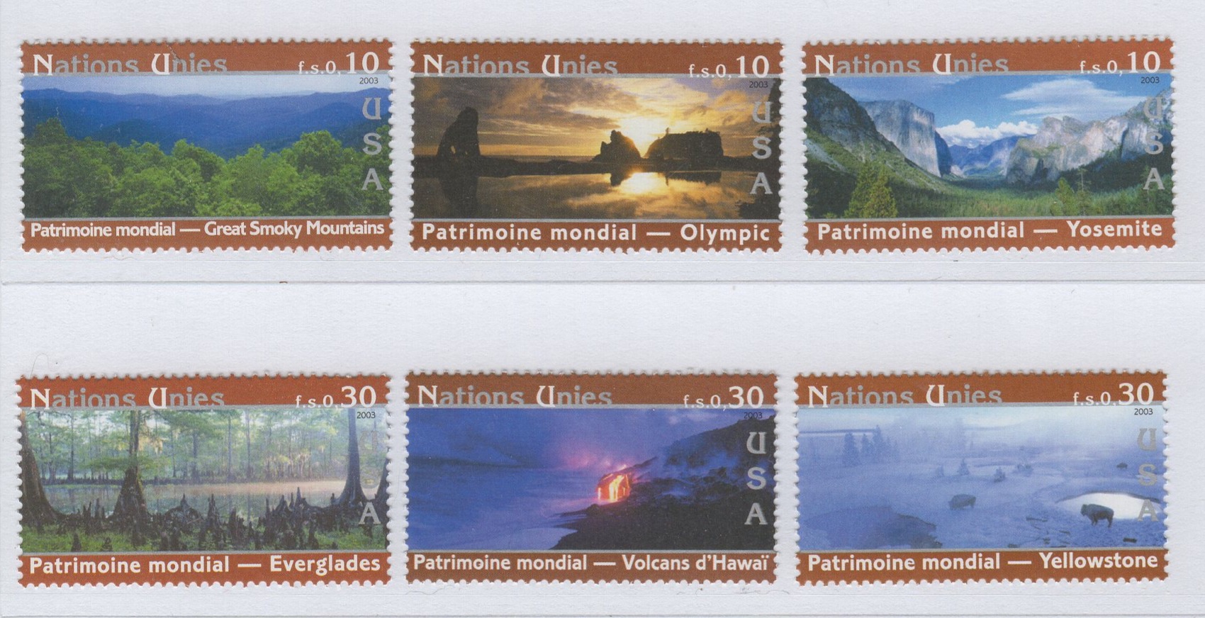 Francobolli Nazioni Unite – ONU Ufficio di Ginevra Anno 2003 Il patrimonio mondiale Stati Uniti d’America