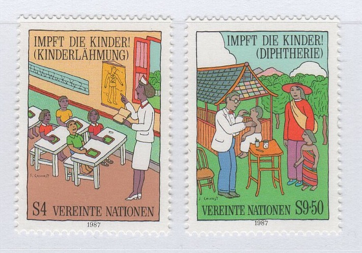 Francobolli Nazioni Unite – ONU Ufficio di Vienna Anno 1987 Vaccinare tutti i bambini
