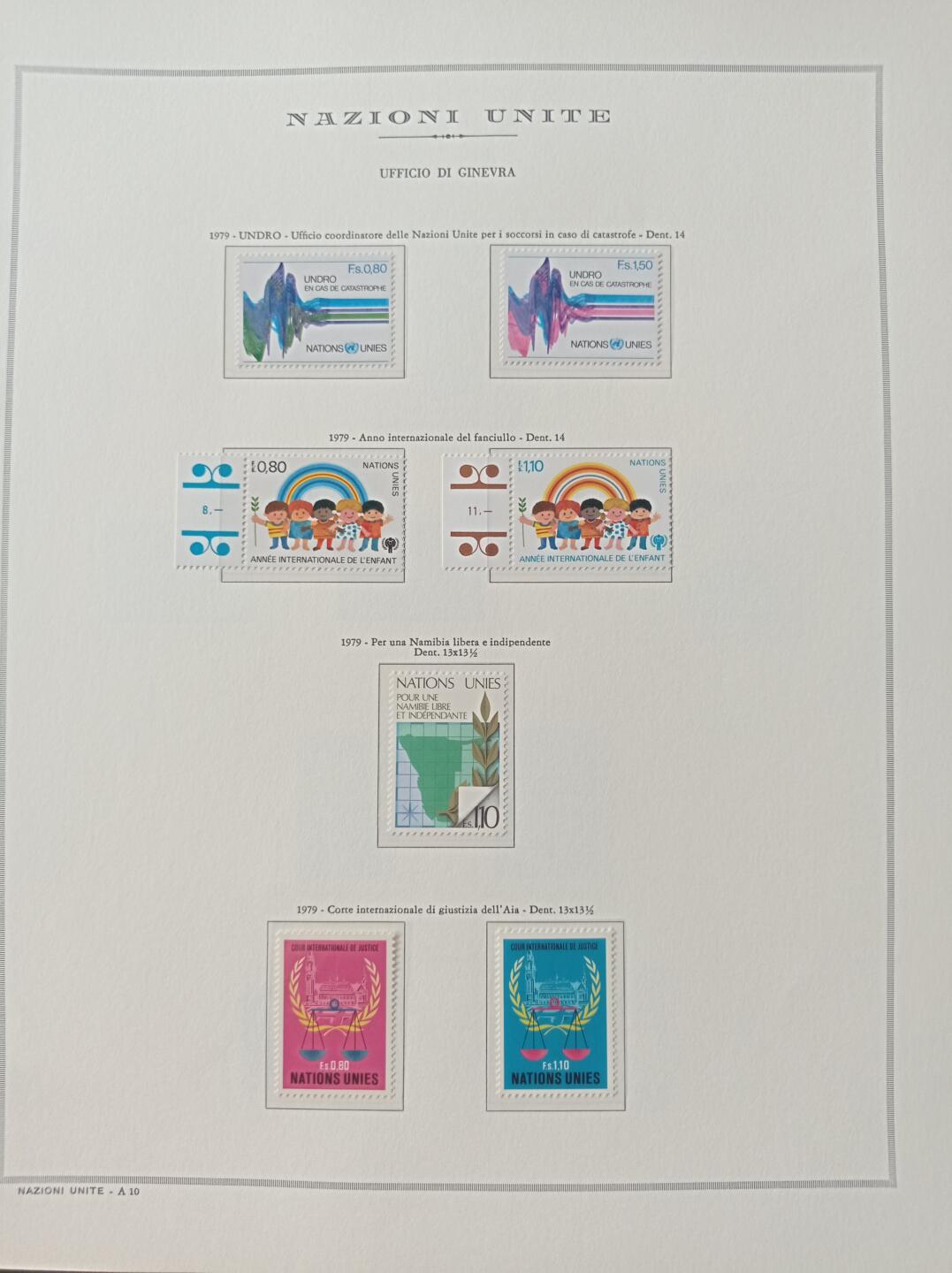 Francobolli Nazioni Unite – Ufficio di Ginevra Anno 1979 Annata completa Montata su foglio Marini King usato (il foglio King è in omaggio)