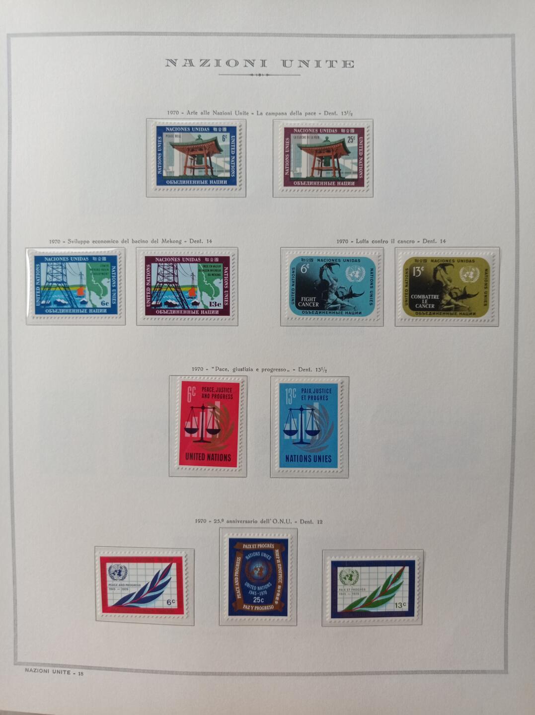 Francobolli Nazioni Unite – Ufficio di New York Anno 1970 Annata completa Montata su foglio Marini King usato (il foglio King è in omaggio)