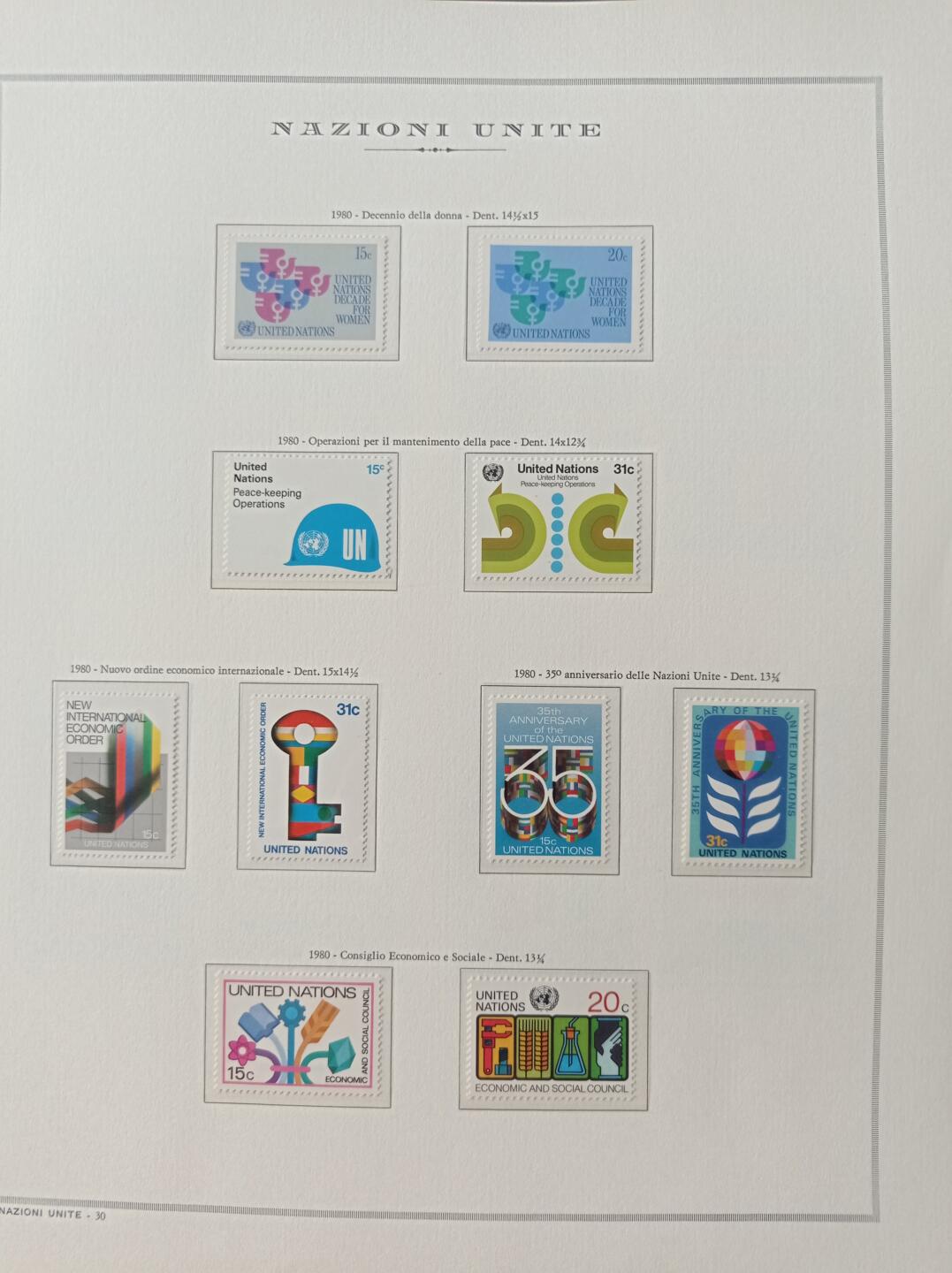 Francobolli Nazioni Unite – Ufficio di New York Anno 1980 Annata completa Montata su fogli Marini King usati (i fogli King sono in omaggio)