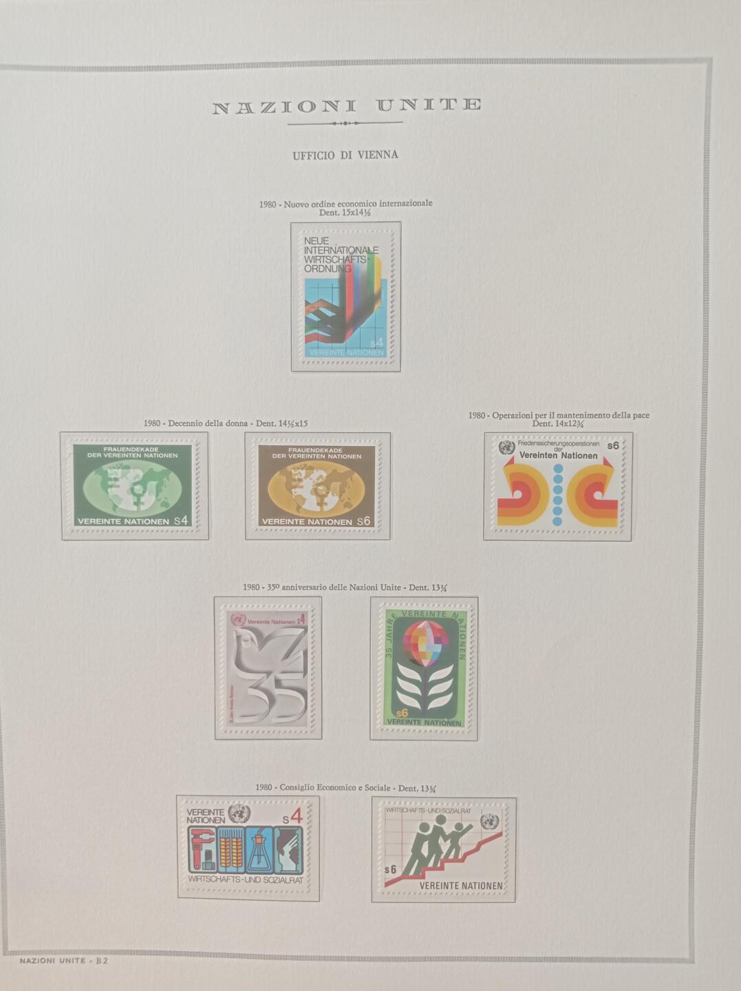 Francobolli Nazioni Unite – Ufficio di Vienna Anno 1980 Annata completa Montata su foglio Marini King usato (il foglio King è in omaggio)