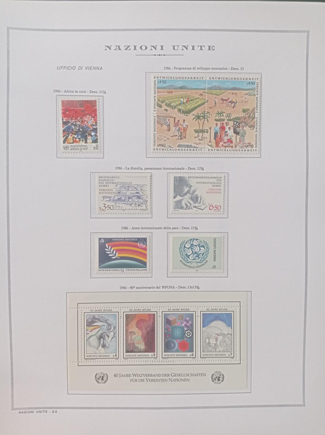 Francobolli Nazioni Unite – Ufficio di Vienna Anno 1986 Annata completa compreso foglietto Montati su foglio Marini King usato (il foglio King è in omaggio)