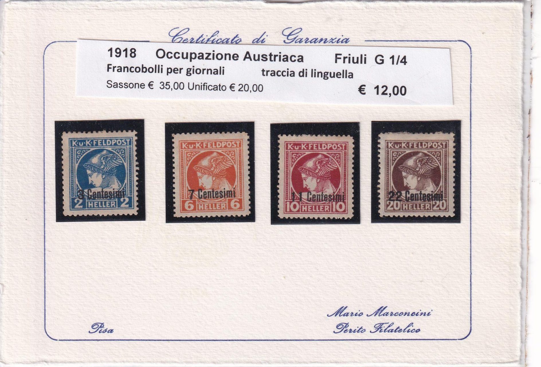 Francobolli Occupazione Austriaca del Friuli Anno 1918 Francobolli per giornali Serie completa Soprastampati (cat. n. 1-4)