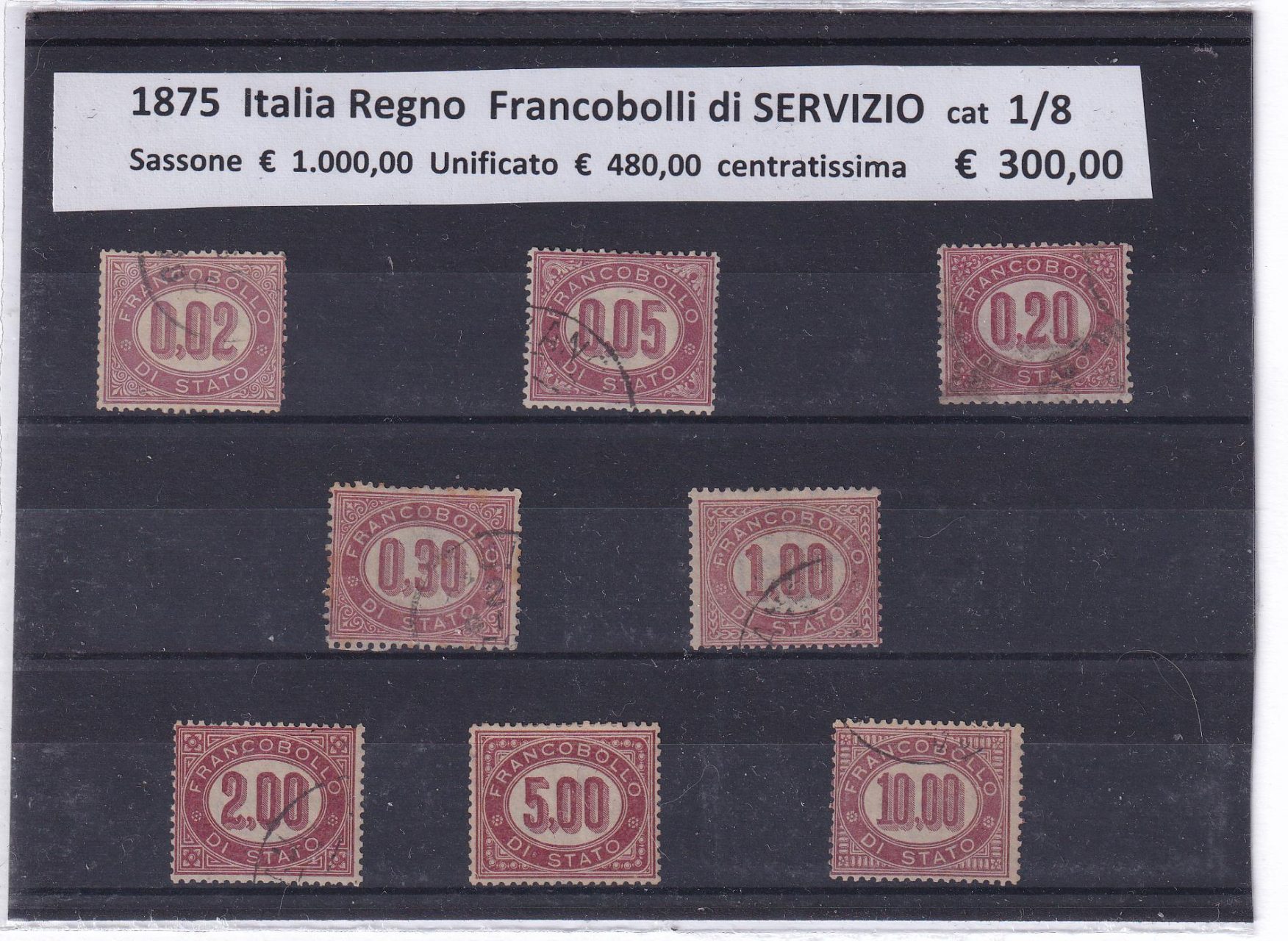 Francobolli Regno d’Italia Anno 1875 Servizio di Stato serie completa (cat. n. 1-8)