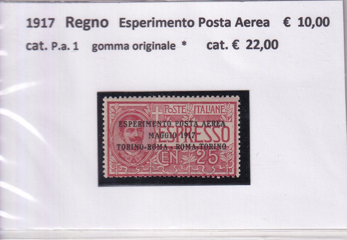 Espresso Centesimi 25 rosso Sovrastampato Esperimento Posta Aerea Maggio 1917 Torino-Roma Roma-Torino