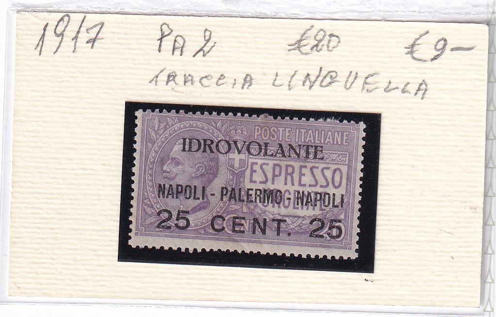 Francobolli Regno d’Italia Anno 1917 Posta Aerea Non emesso Centesimi 40 Soprastampato Idrovolante Napoli-Palermo-Napoli 25 cent. 25 (cat. n. 2)