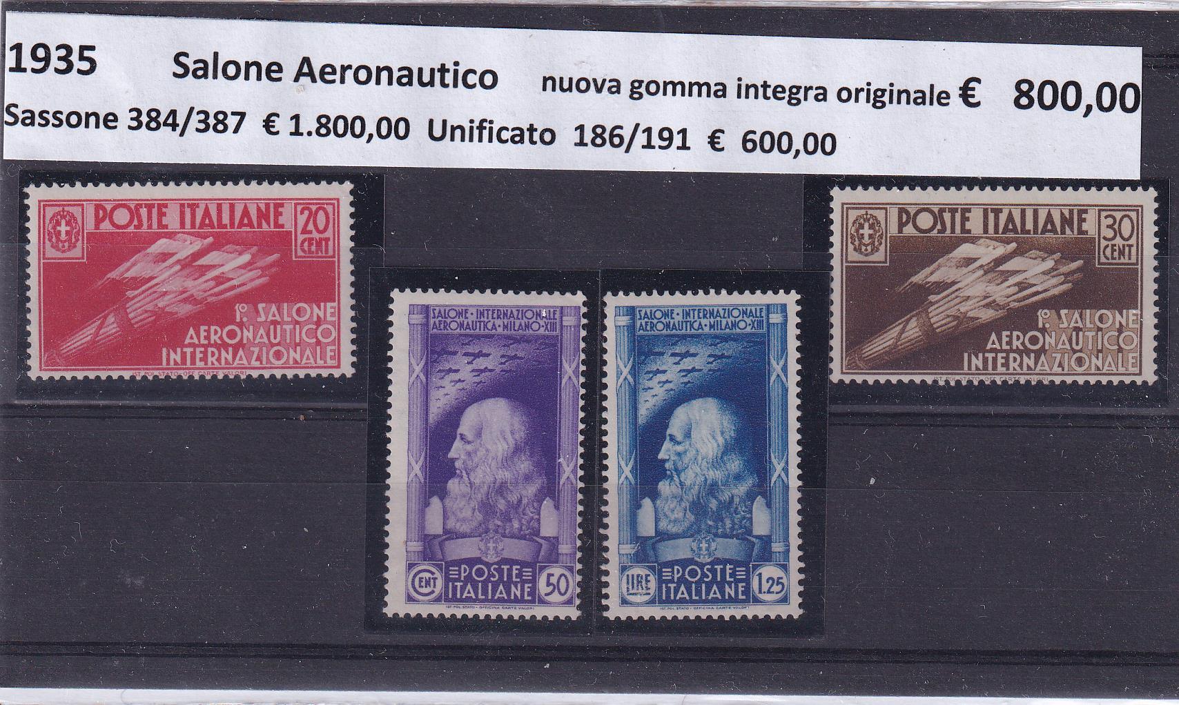 Francobolli Regno d’Italia Anno 1935 Serie completa Primo Salone Aeronautico Internazionale (cat. n. 384-387)
