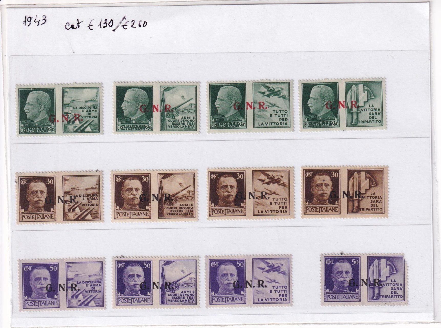 Francobolli Repubblica Sociale Italiana Anno 1943 Serie Propaganda di Guerra Soprastampati G.N.R. (cat. n. 16-27)
