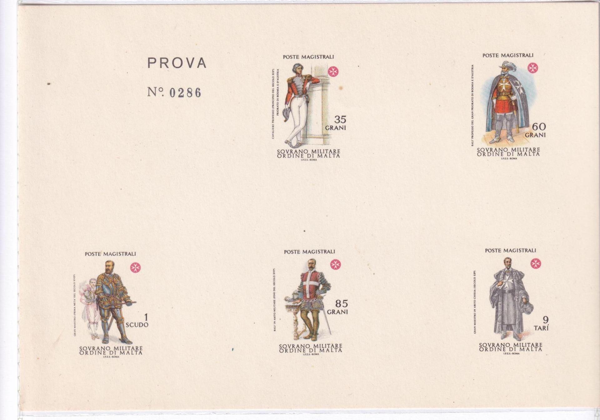 Francobolli S.M.O.M. Anno 1979 Prova Serie Antiche Uniformi (cat. n. 163-167)