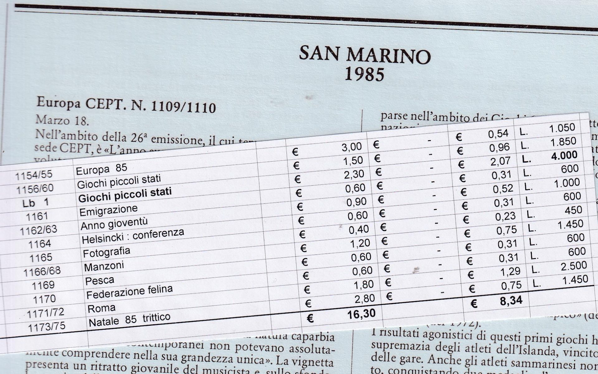 Francobolli San Marino 1985 annata completa