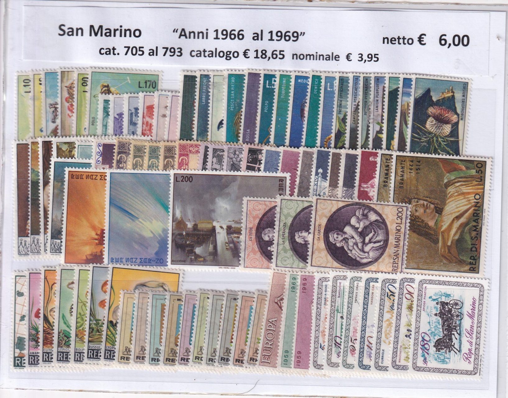 Francobolli San Marino Annate complete 1966, 1967, 1968, 1969
