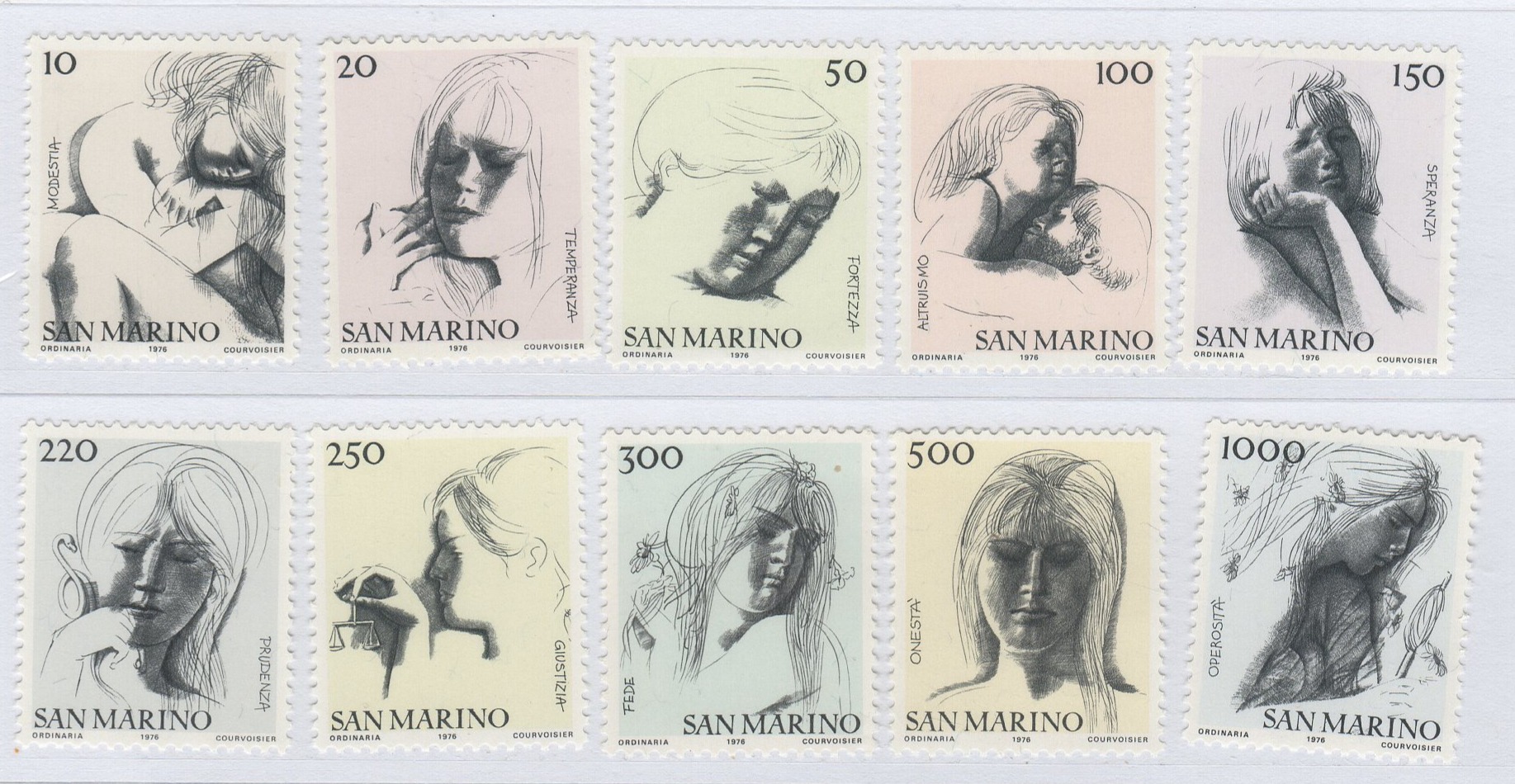 Francobolli San Marino Anno 1976 Le virtù civili Prima serie