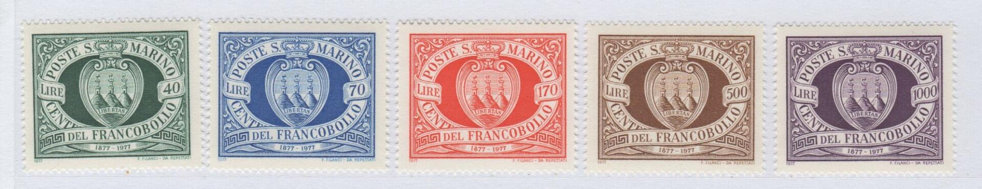 Francobolli San Marino Anno 1977 Centenario dei primi francobolli di San Marino