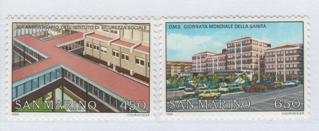 Francobolli San Marino Anno 1986 30esimo anniversario dell’Istituto Sammarinese per la Sicurezza Sociale e Giornata mondiale della Sanità