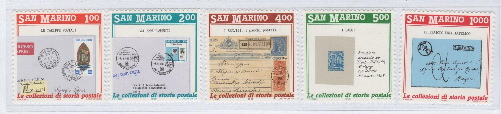 Francobolli San Marino Anno 1989 Invito alla filatelia Seconda serie Le collezioni di storia postale