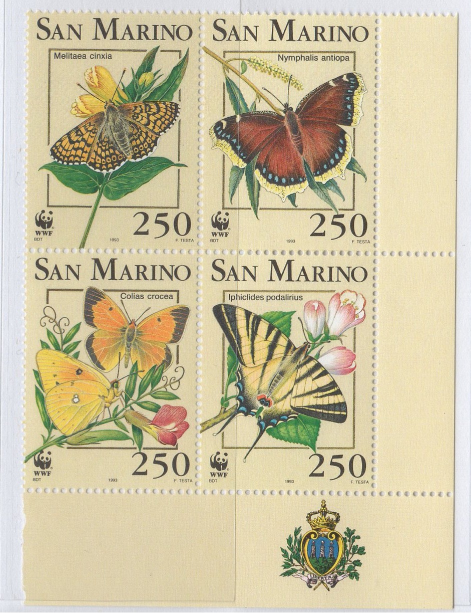 Francobolli San Marino Anno 1993 Animali da proteggere WWF Farfalle