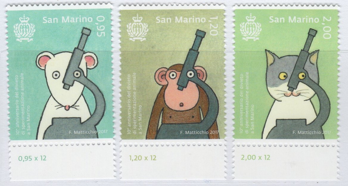Francobolli San Marino Anno 2017 Decimo anniversario dell’introduzione del divieto di sperimentazione animale nella Repubblica di San Marino